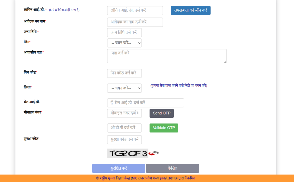 यहां आपको अपना लॉगिन आईडी बनाना है आवेदक का नाम डालना है जन्मतिथि लिंग और पता आपको दर्ज करना है पिन कोड डालना है जिला का चयन करना है जिला का ईमेल आईडी आपको डालना है और अपना मोबाइल नंबर डालना है और Send ओटीपी वाले पर हम क्लिक कर देंगे