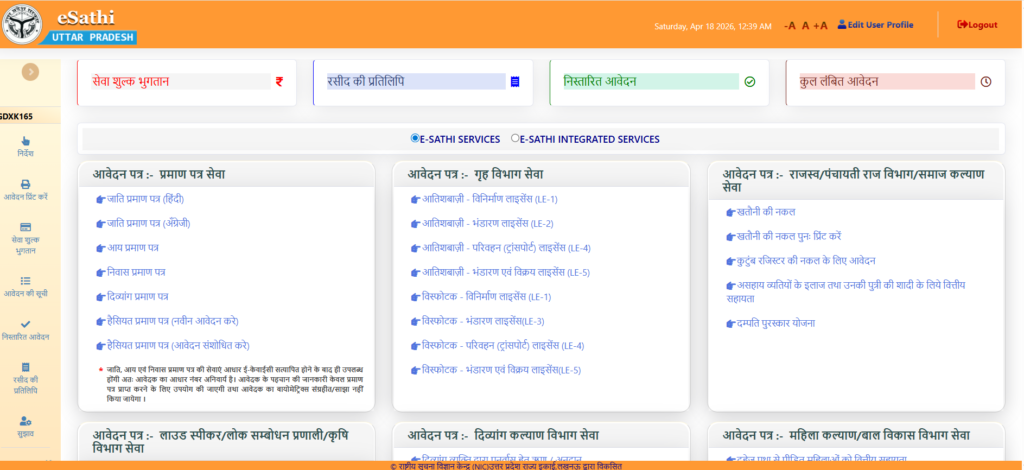 Menu Page New -अब आप यहां देखेंगे कि यहां पर बहुत सारे गवर्नमेंट के सर्विसेज यहां पर दिखाई देंगे जैसे कि आवेदन पत्र में देखेंगे Caste.आय ,निवास ,दिव्या ,हैसियत, ऐसे कई आवेदन पत्र जो है यहां पर आपको दिखेगा तो जैसे कि हम अपना जो है कास्ट सर्टिफिकेट बनाने के लिए आए हैं जात प्रमाण पत्र तो हमें जो है प्रमाण पत्र अगर आप हिंदी में बनाना तो हिंदी पर अगर इंग्लिश में बनाना तो आप इंग्लिश में क्लिक कर देंगे