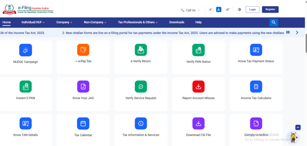 तो दोस्तों आपको अपने मोबाइल फोन या कंप्यूटर किसी भी ब्राउज़र पर आपको इनकम टैक्स डिपार्टमेंट का ऑफिशियल वेबसाइट ओपन कर लेना है