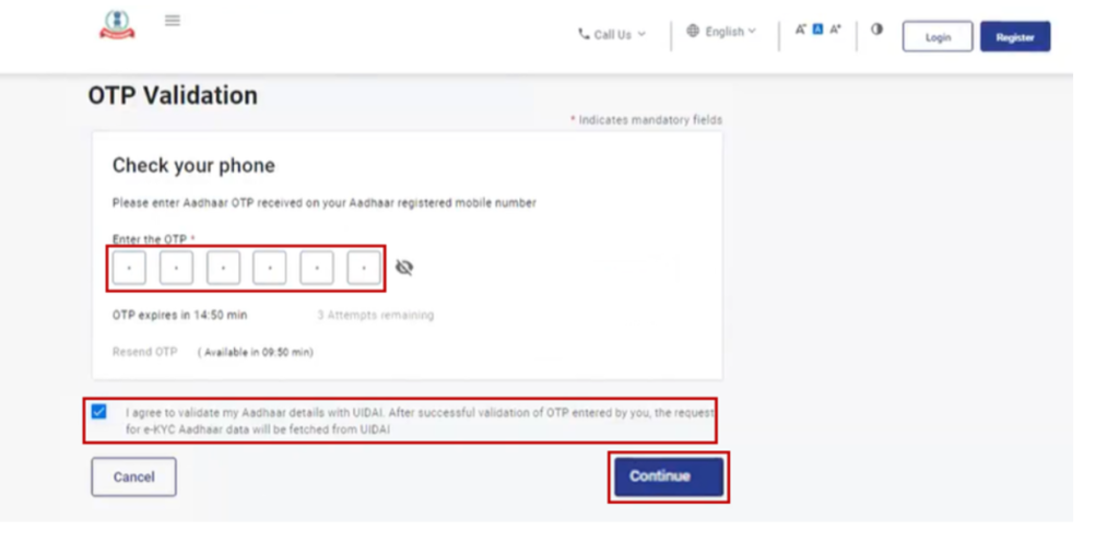 • ओटीपी एक्सपायर होने का वहां पर अवेलेबल इन मिनिट्स के अंदर आपको उसे ओटीपी को डाल देना है