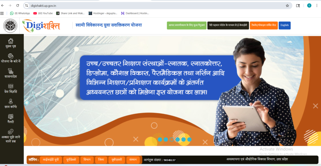 तो आपको कुछ इस प्रकार का Digiशक्ति का पोर्टल यहां पर स्वामी विवेकानंद युवा शक्ति करण योजना का पोर्टल ओपन होकर आ जाएगा इस पर आपको ओपन कर लेना है लिंक आप मैं दे रखा है वहां से आपको लिंग पर क्लिक करके आपको इस वेबसाइट को ओपन कर लेना है|